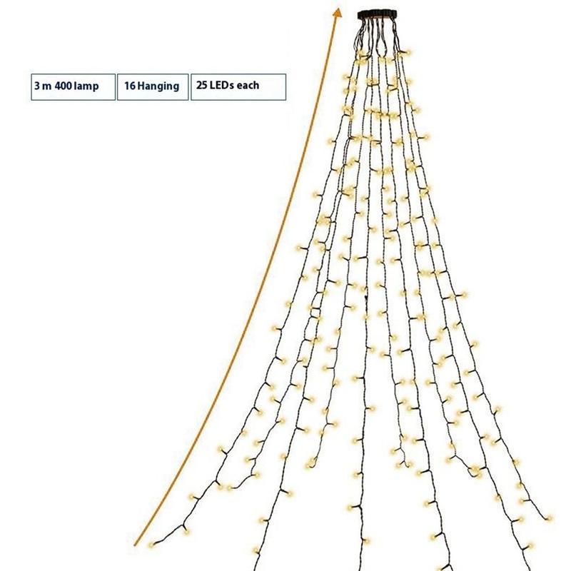 LED-Lichterkette für Weihnachtsbaum mit Ring - 400 LED, EU-Stecker, 3m