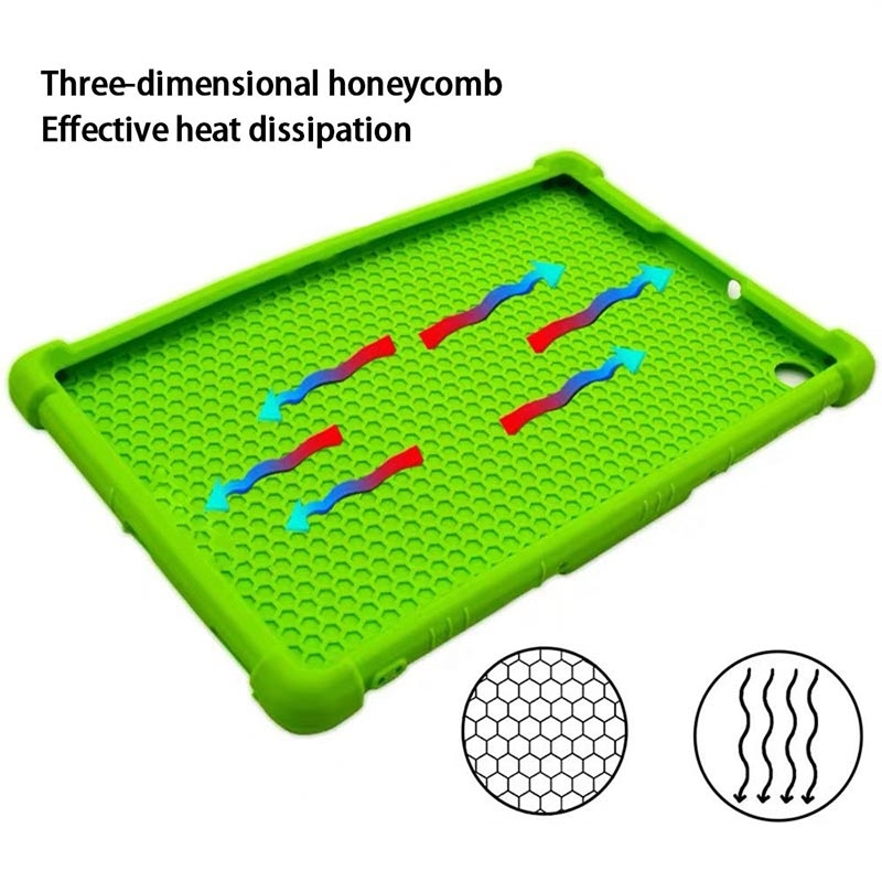 Eine weiche Silikonhülle bietet maximalen Schutz vor Stößen und harten Schlägen für die Rückseite und die Seiten Ihres Tablets