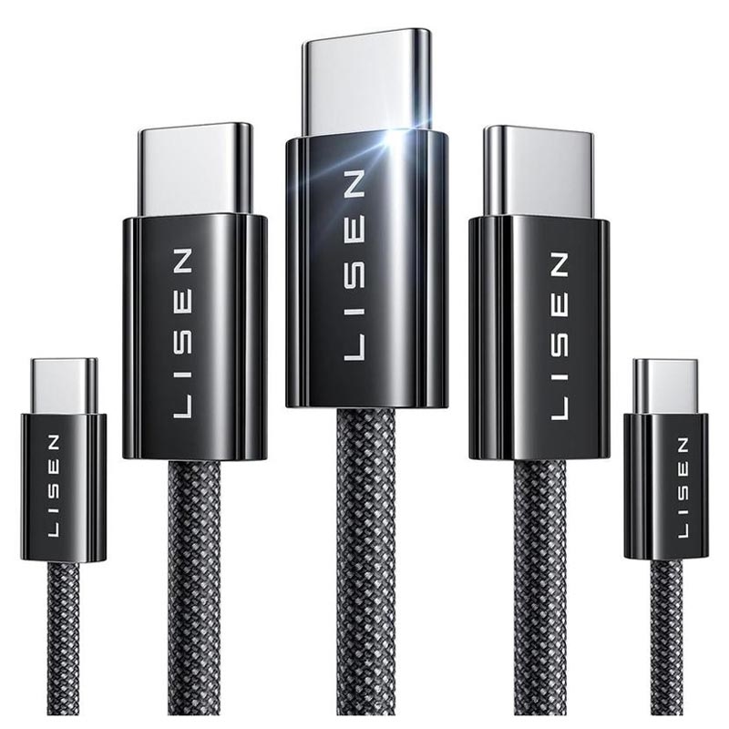 Lisen USB-C-zu-USB-C-Kabelset - 60W, 3A, Power Delivery Schnellladung, geflochtenes Nylon, verschiedene Längen