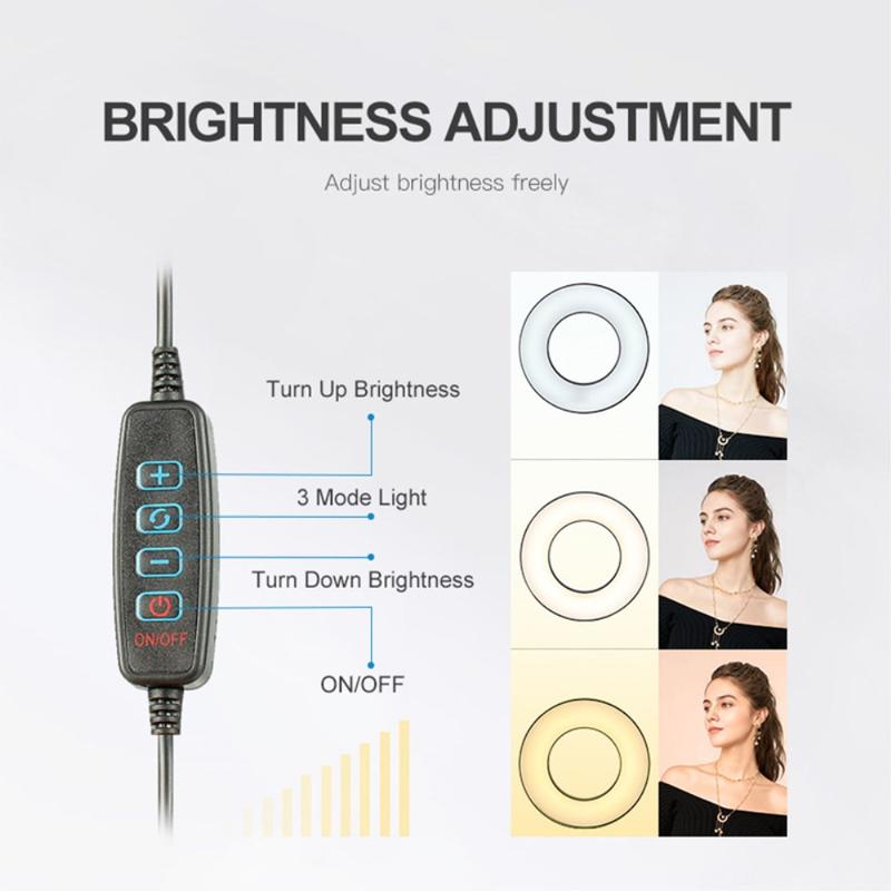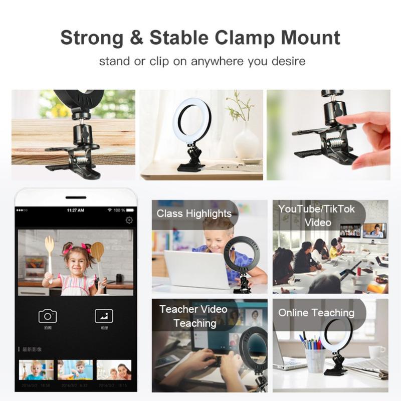 6-Zoll-Desktop-Ringlicht mit 3 Farbmodi und einstellbaren Helligkeitsstufen. Kommt mit einer starken Klemme