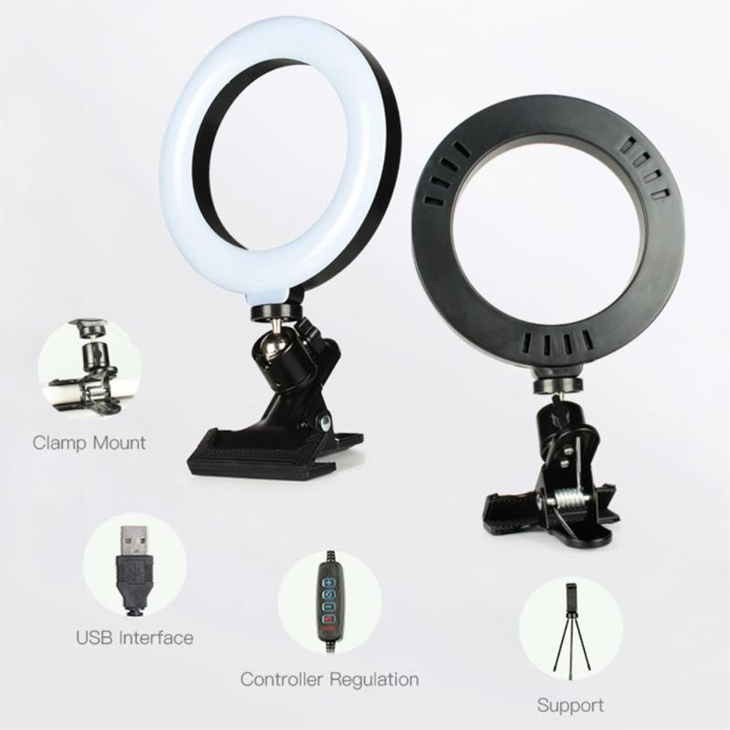 • Live Broadcast Video Shooting 6" 3 Farbe Modi LED Selfie Ring Licht + Clamp Mount