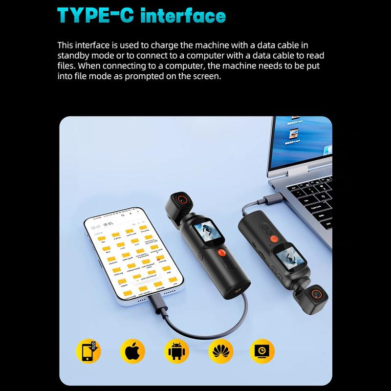 - Rotierender Gimbal + Anti-Shake - Sorgt für stabile Aufnahmen in professioneller Qualität bei Bewegungen.