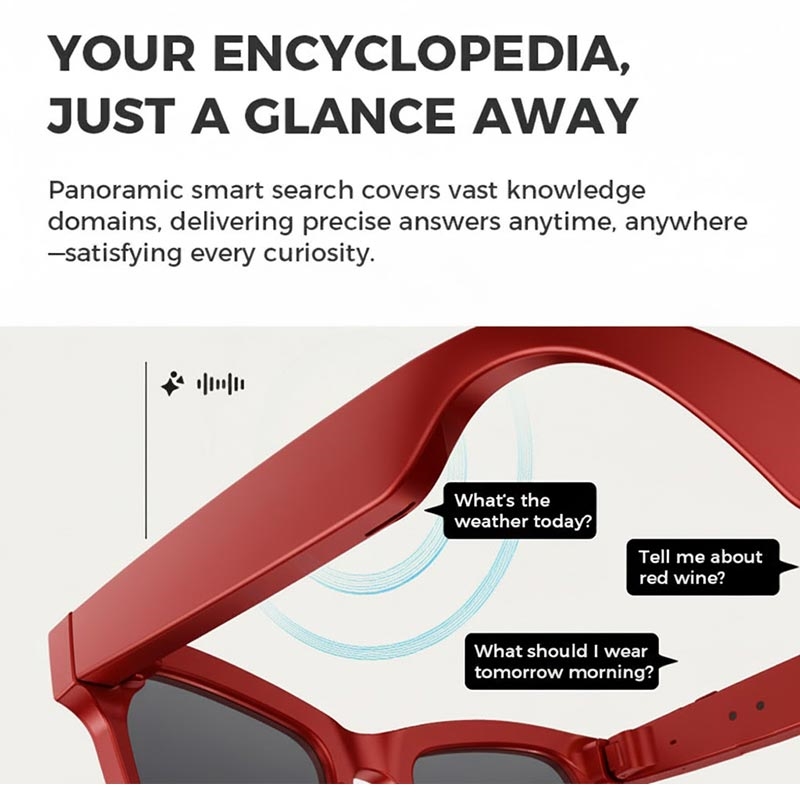KI-gestützte Funktionen wie Objekterkennung, Sprachbefehle, Dialoginteraktion und Echtzeitübersetzung erhöhen den Komfort und ermöglichen eine nahtlose Kommunikation in verschiedenen Sprachen. Zwei Lautsprecher mit unabhängigen Verstärkern sorgen für satten, klaren Klang sowohl bei der Musikwiedergabe als auch bei Anrufen, während Mikrofone mit Rauschunterdrückung für klare Sprachqualität sorgen.
