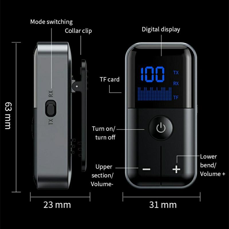 M20 Drahtloser Bluetooth 5.4 Empfänger / Sender mit 3.5mm AUX - Lavalier Clip Adapter mit TF Card Playback für Auto und Home Audio