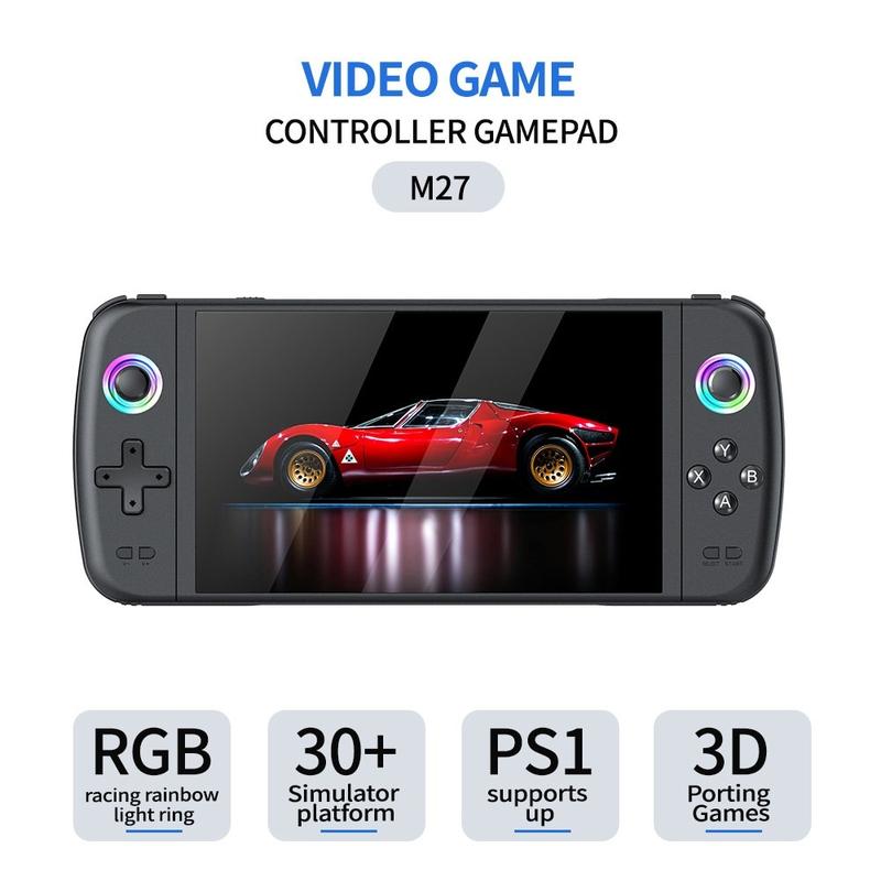 • M27 7-Zoll-Handheld-Spielkonsole - IPS-Display, über 20.000 klassische Spiele, RGB-Beleuchtung, HD-Ausgabe, 64GB TF-Karte im Lieferumfang enthalten