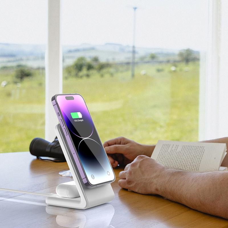Laden Sie Ihr iPhone und Ihre AirPods gleichzeitig auf, ohne dass Sie mehrere Kabel benötigen. Die eingebauten Magnete sorgen für einen perfekten Halt und garantieren ein effizientes und sicheres Aufladen zu jeder Zeit.