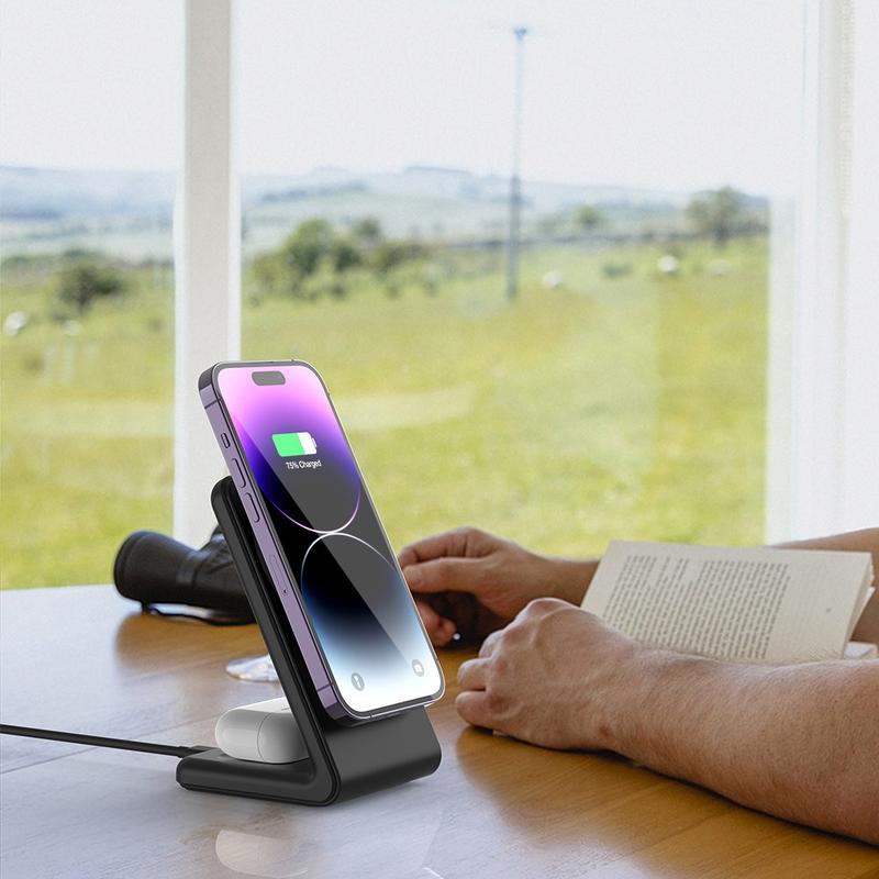 Laden Sie Ihr iPhone und Ihre AirPods gleichzeitig auf, ohne dass Sie mehrere Kabel benötigen. Die eingebauten Magnete sorgen für einen perfekten Halt und garantieren ein effizientes und sicheres Aufladen zu jeder Zeit.