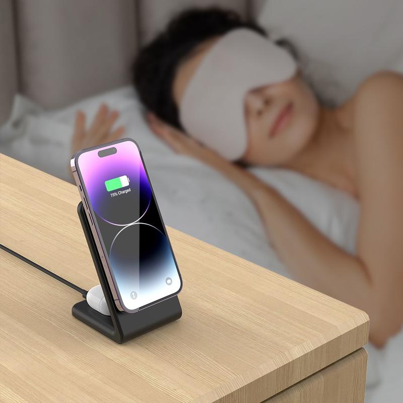 Das M2A 2-in-1 magnetische kabellose Ladegerät ist ein schlankes und leistungsstarkes Tischgerät, mit dem Sie Ihr iPhone und Ihre AirPods gleichzeitig aufladen können. Mit seiner präzisen magnetischen Ausrichtung, dem vertikalen Design und den zertifizierten Sicherheitsstandards ist es der ideale Alltagsbegleiter für zu Hause, im Büro oder im Bett.