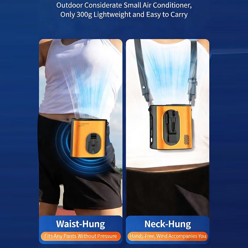 Mit dem tragbaren Ventilator M376 bleiben Sie überall kühler und fühlen sich wohler. Dieses kompakte Gerät wurde für die freihändige persönliche Kühlung entwickelt und kombiniert einen starken Luftstrom mit Halbleiter-Kühltechnologie, um an warmen Tagen ein erfrischendes, eiskaltes Gefühl zu vermitteln. Dank seines tragbaren Designs, das an der Taille befestigt wird, ist es eine praktische Wahl für Outdoor-Aktivitäten, den Weg zur Arbeit, die Arbeit selbst, Reisen und den täglichen Gebrauch in Innenräumen, wenn Sie zusätzliche Kühlung benötigen, ohne einen herkömmlichen Ventilator in der Hand halten zu müssen.