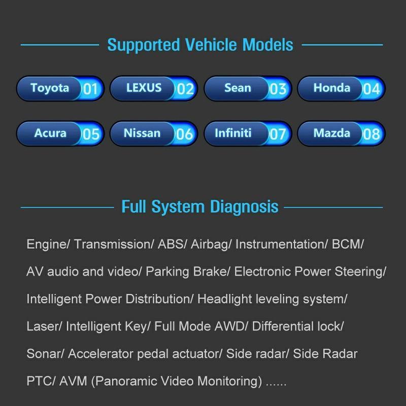 - Vollständige Systemabdeckung für die wichtigsten japanischen Marken: Motor, Getriebe, ABS, Airbag, Karosseriekontrolle, Fahrwerk, Audio