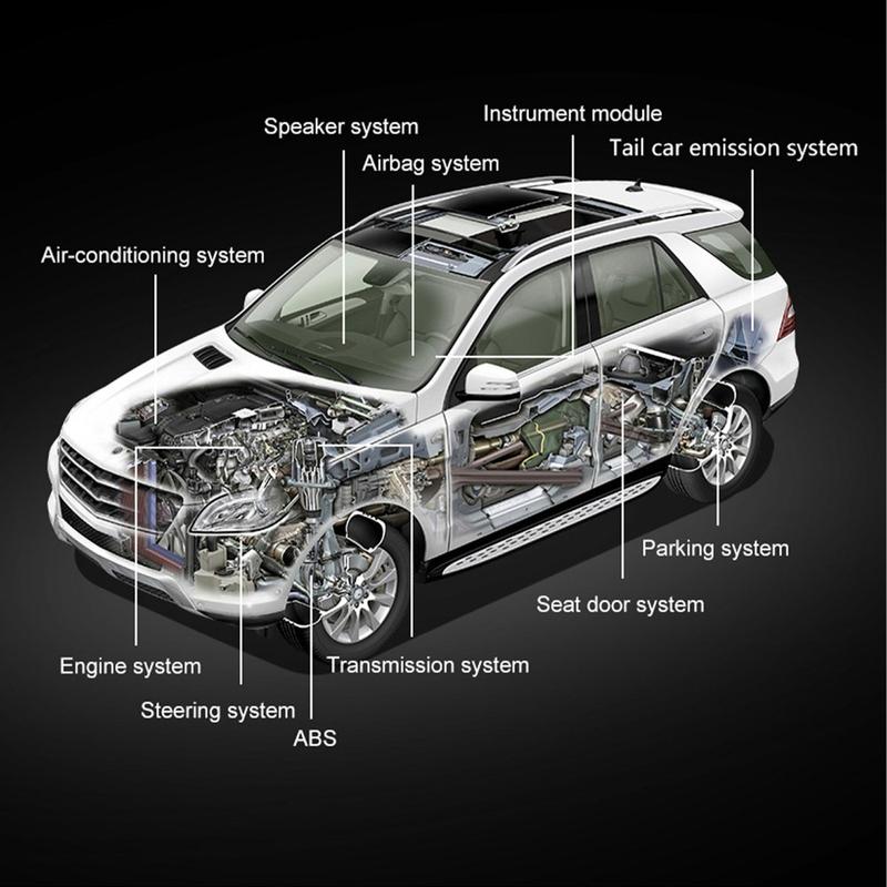 - Scans des gesamten Systems gehen über das Motorsteuergerät hinaus und helfen dabei, Probleme mit dem ABS-Radsensor oder dem Airbag-Schaltkreis zu erkennen, die von allgemeinen Lesegeräten übersehen werden können.