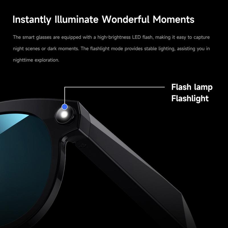 - KI-gesteuerte Funktionen - KI-Sprachassistent, Sprachaufnahme, Musiksteuerung, Anrufe, Übersetzung und Objekterkennung machen die Brille wirklich interaktiv.