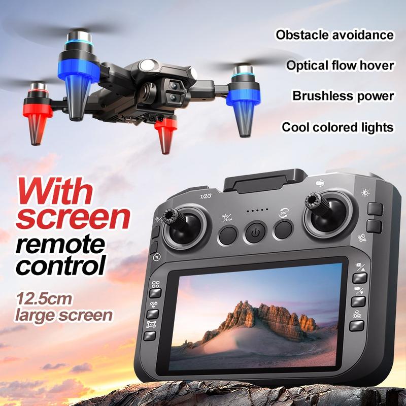 • M9 Bürstenloser Motor FPV Drohne - faltbarer Quadcopter mit Dual HD Kameras, Optical Flow, Hindernisvermeidung, Screen Controller und 3 Akkus