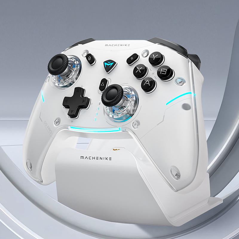 Mit Unterstützung für Bluetooth, 2,4-GHz-Funk und kabelgebundene USB-C-Verbindung passt sich der Machenike G5Pro Max problemlos an verschiedene Geräte und Spielstile an. Seine Abfragerate von 1000 Hz sorgt für eine extrem reaktionsschnelle Eingabe, während die magnetischen Trigger und das fein abgestimmte Steuerungssystem eine präzisere Bewegung in Renn-, Action-, Sport- und Shooter-Spielen ermöglichen. Die mitgelieferte Ladestation hält den Controller aufgeladen, aufbewahrt und bereit für Ihre nächste Gaming-Session.