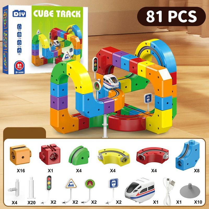 81-teiliges Magnetbahn-Set - pädagogisches STEAM-Bauspielzeug mit wiederaufladbarem Mini-Zug