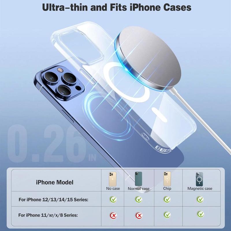 - Sofortige magnetische Ausrichtung - Eingebauter Magnetring rastet automatisch auf dem iPhone oder den AirPods ein, um sie perfekt zu positionieren und innerhalb von Sekunden aufzuladen.
