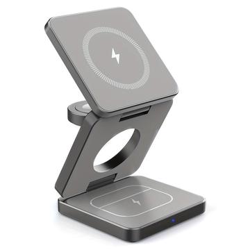 Magnetisches kabelloses Ladegerät im Taschenformat 3-in-1 faltbar - Grau