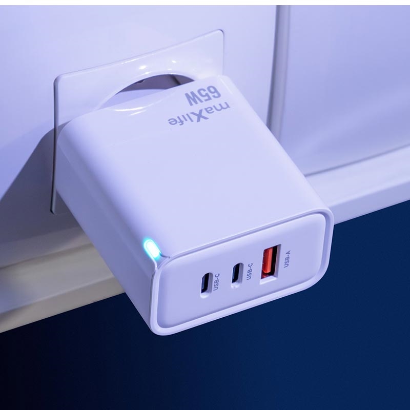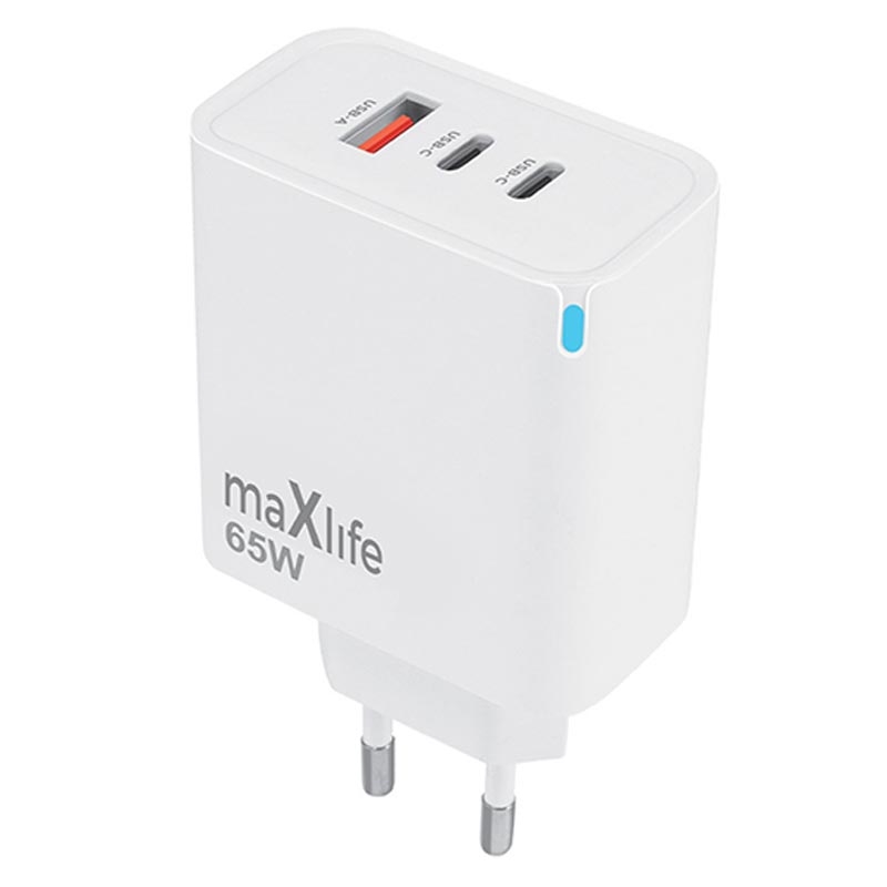 Maxlife MXTC-09-65ACC GaN Ladegerät - 65W Schnellladeadapter mit 2× USB-C PD & 1× USB-A QC Ports