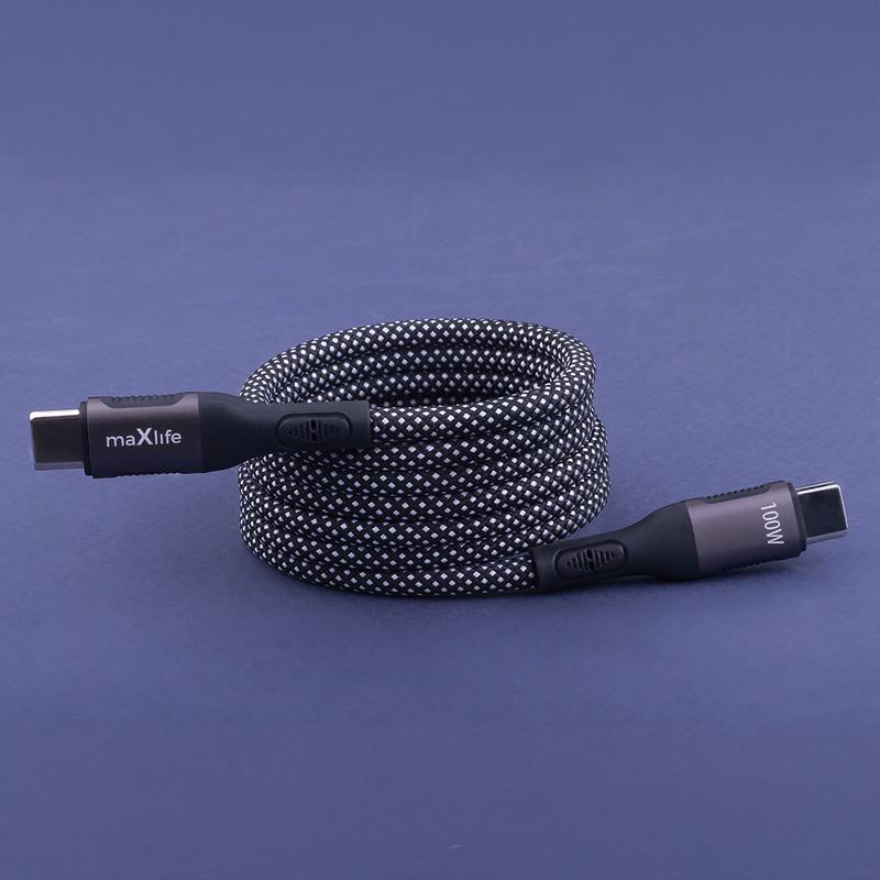 • Maxlife MXUC-11 magnetisches USB-C-auf-USB-C-Kabel - 1m, 100W Schnellaufladung, Nylon-Geflecht, verstärkte Anschlüsse