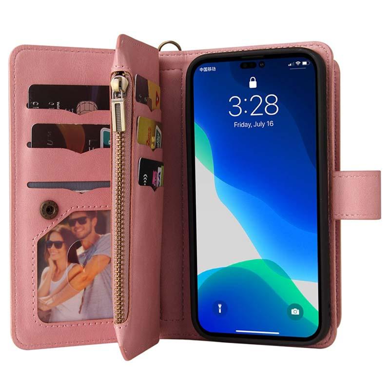 Mehrzweck-Serie iPhone 14 Pro Schutzhülle mit Geldbörse - Rosa