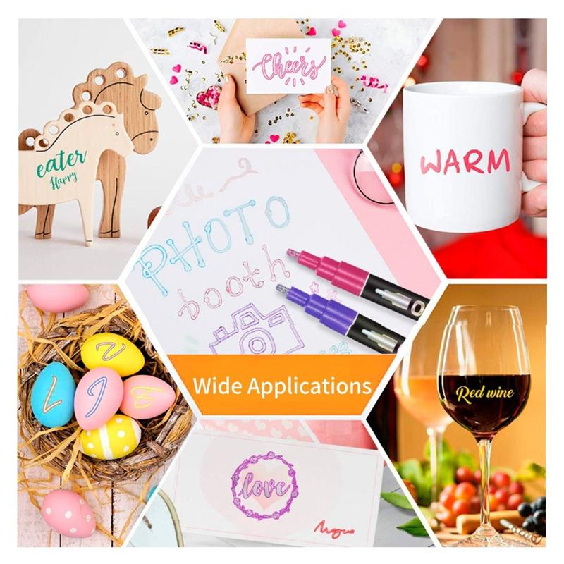 Es kann zum Schreiben von Grußkarten, Zeichnen von Bildern, Markierungen, Postern oder anderen DIY verwendet werden. Auch geeignet für fast jede Oberfläche, wie Metall, Keramik, Holz, Gummi, Glas, Kunststoff, Stein, etc.