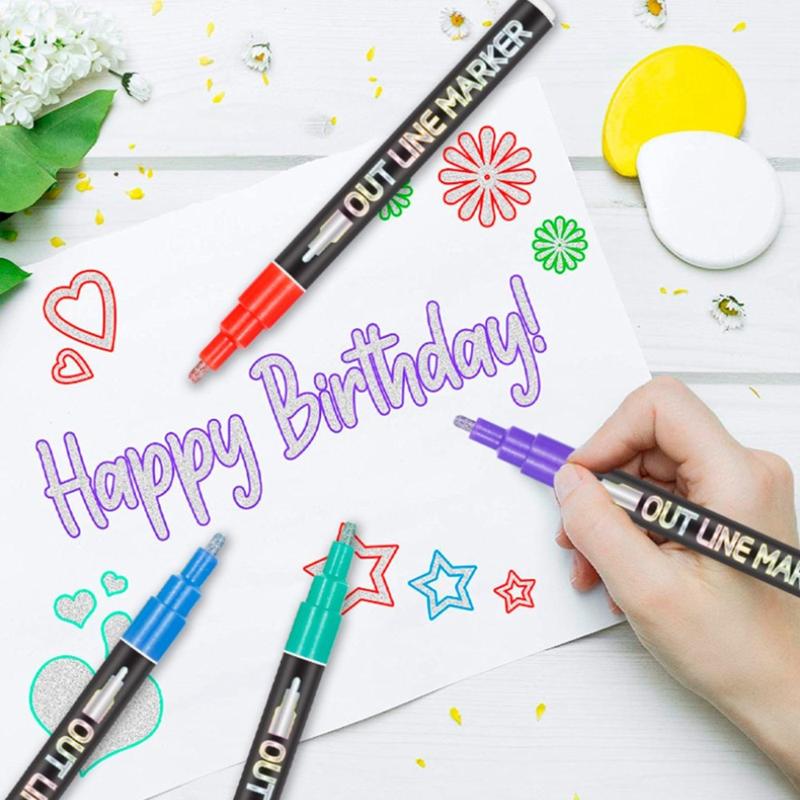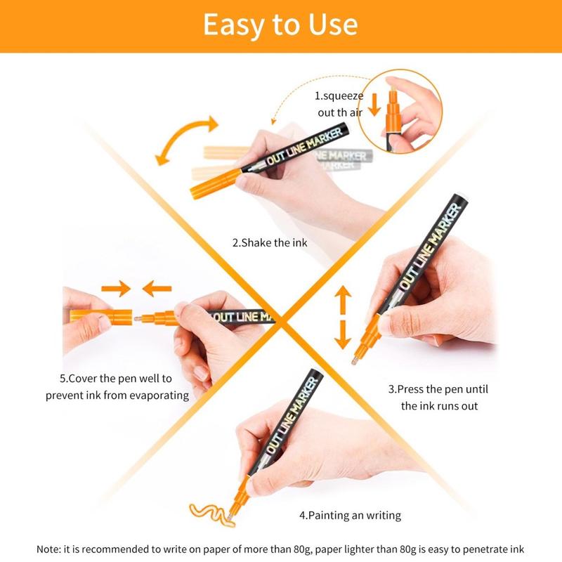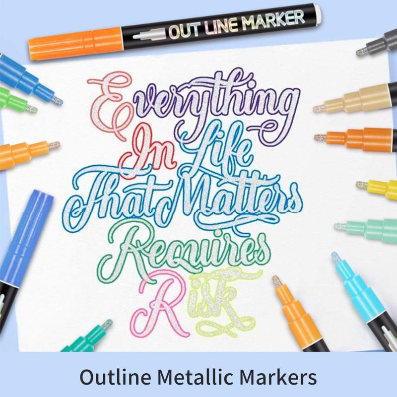 Metallische Konturenmarker zum Zeichnen und Schreiben - 12 Stk.