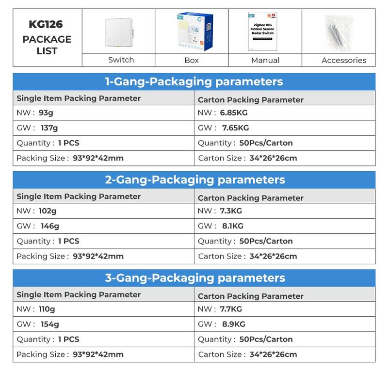 Der MG-KG126 Zigbee Radar Smart Switch vereint die Technologie der Bewegungserkennung mit der Fernsteuerung per App, um die alltäglichen Beleuchtungsanforderungen zu vereinfachen. Die nahtlose Zigbee-Integration, kombiniert mit der Flexibilität der Tuya-Zeitplanung, sorgt für ein reibungsloses, benutzerfreundliches Erlebnis. Dieser Schalter ist ideal für alle, die ein Gleichgewicht zwischen Komfort, Energieeffizienz und Smart-Home-Kompatibilität suchen und wertet jeden Raum auf, in dem er installiert wird.