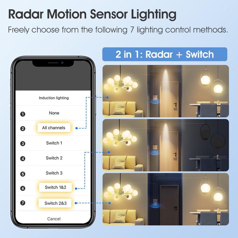 Revolutionieren Sie Ihr Lichtmanagement zu Hause mit dem MG-KG126 Zigbee Radar Smart Switch. Dieser intelligente Wandschalter, der sich in zwei Richtungen schalten lässt, bietet automatische Bewegungserkennung, App-Fernsteuerung und flexible Zeitplanung über die Tuya-Plattform. Der eingebaute Radarsensor erkennt die Anwesenheit von Personen und sorgt dafür, dass die Beleuchtung mühelos ein- und ausgeschaltet wird - das spart Zeit und Energie.