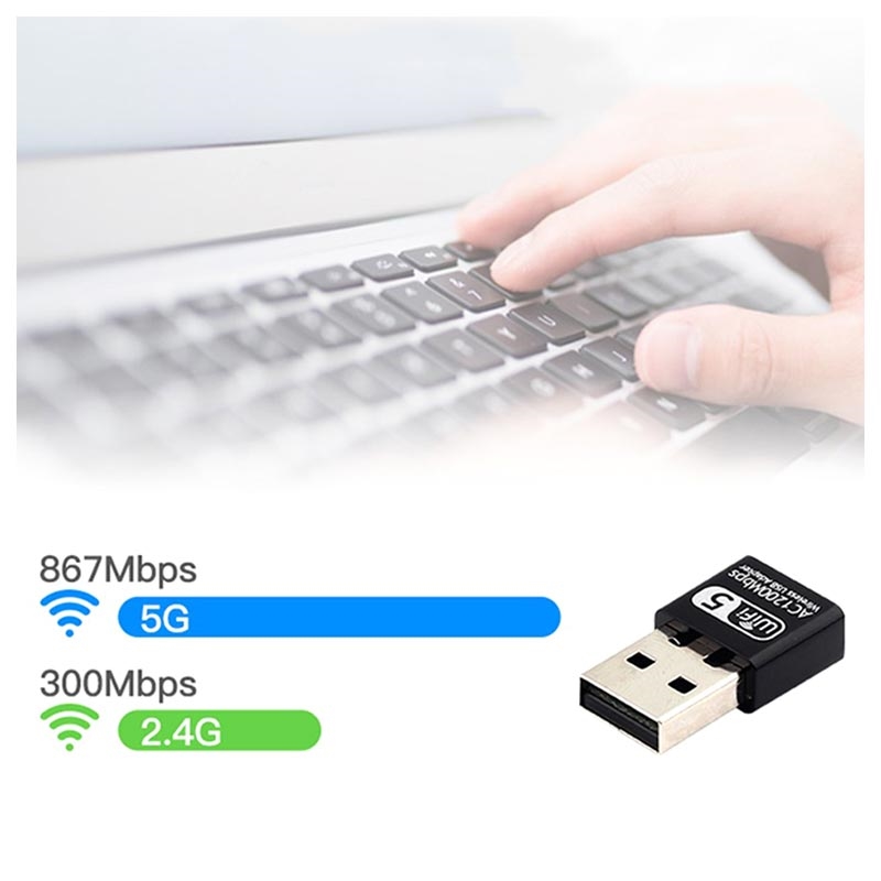 Mini Dualband Drahtlose USB Adapter für PC, Laptop - 2.4 GHz (300 Mb/s), 5 GHz (867 Mb/s), USB 2.0