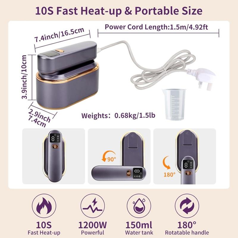 Anstatt mit separaten Bügeleisen für unterwegs und zu Hause zu jonglieren, erhalten Sie ein leichtes Gerät, das sich an jedes Kleidungsstück anpassen lässt. Das intelligente Display macht das Rätselraten überflüssig, während das 1200-Watt-Element hartnäckige Knitterfalten beseitigt und dennoch empfindliche Stoffe schont - ideal für alle, die Wert auf Schnelligkeit, Vielseitigkeit und Platz im Koffer legen.