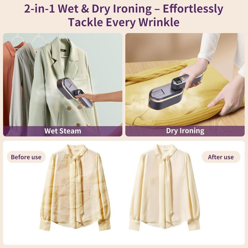 - Vielseitige Bügelmodi - Hängenddampf oder Flachbügeln, mit separaten Trocken-/Nassoptionen für Baumwolle, Seide, Leinen und Synthetik.