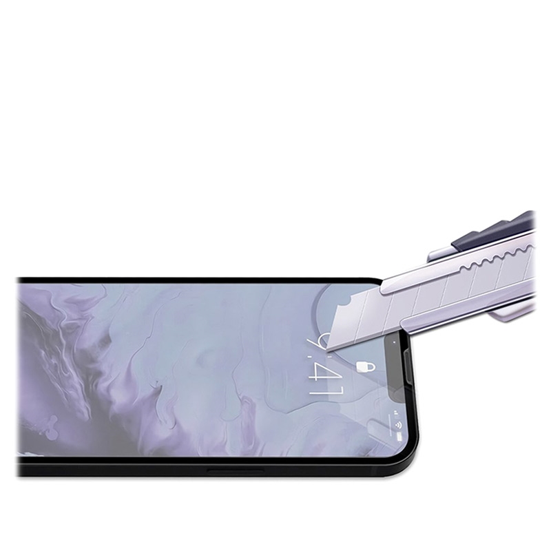 Das gehärtete 9H-Glas ist resistent gegen Kratzer durch Metallgegenstände, während die oleophobe Oberfläche Fingerabdrücke und Flecken abweist. Darüber hinaus machen die 2,5D-Bogenkanten es kaum wahrnehmbar, wenn Sie Ihr iPhone 13 Mini in der Hand halten.