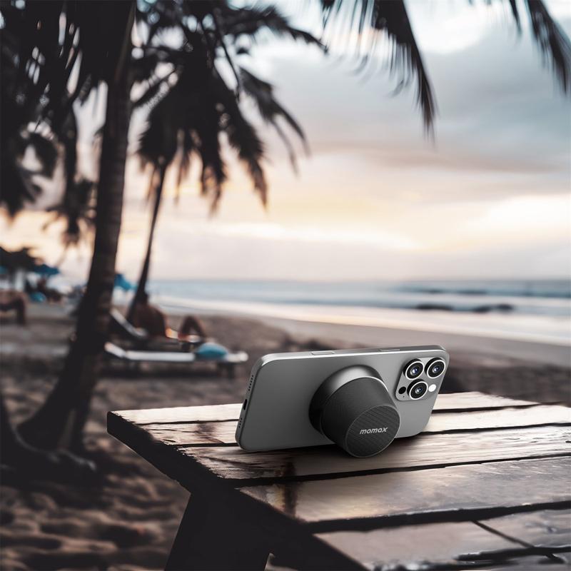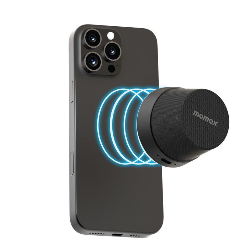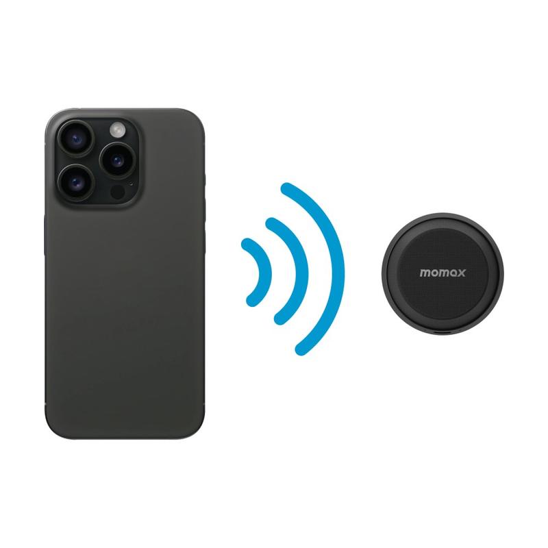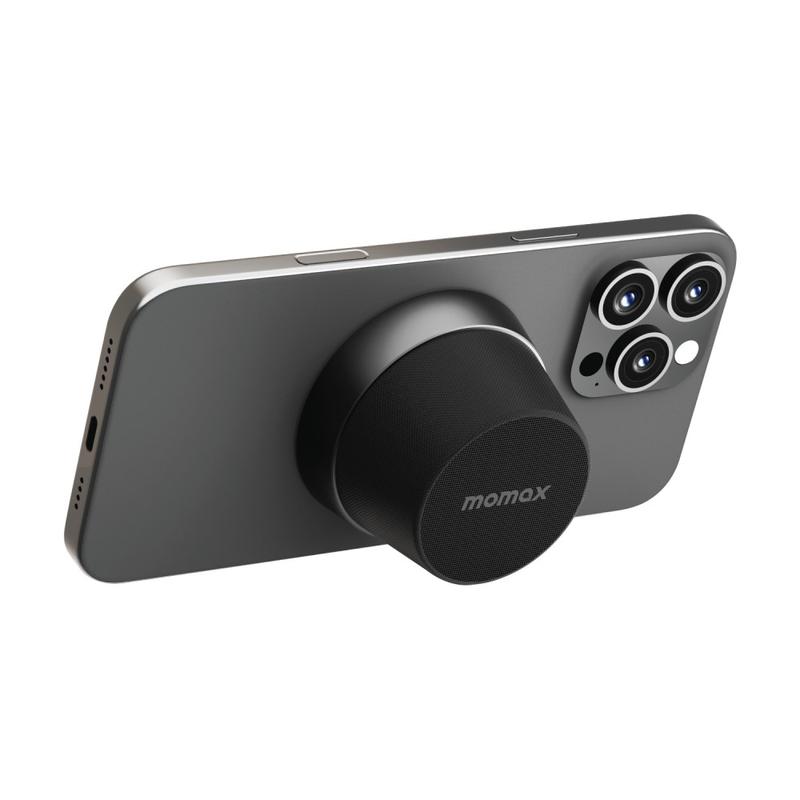 • Momax 1-Vibe Go BS6 Magnetischer Mini-Bluetooth-Lautsprecher und Handyhalter, 360°-Sound and IPX6 wasserdicht