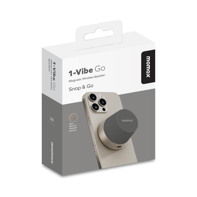 • Momax 1-Vibe Go BS6 Magnetischer Mini-Bluetooth-Lautsprecher and Handyhalter, 360°-Sound and IPX6 wasserdicht