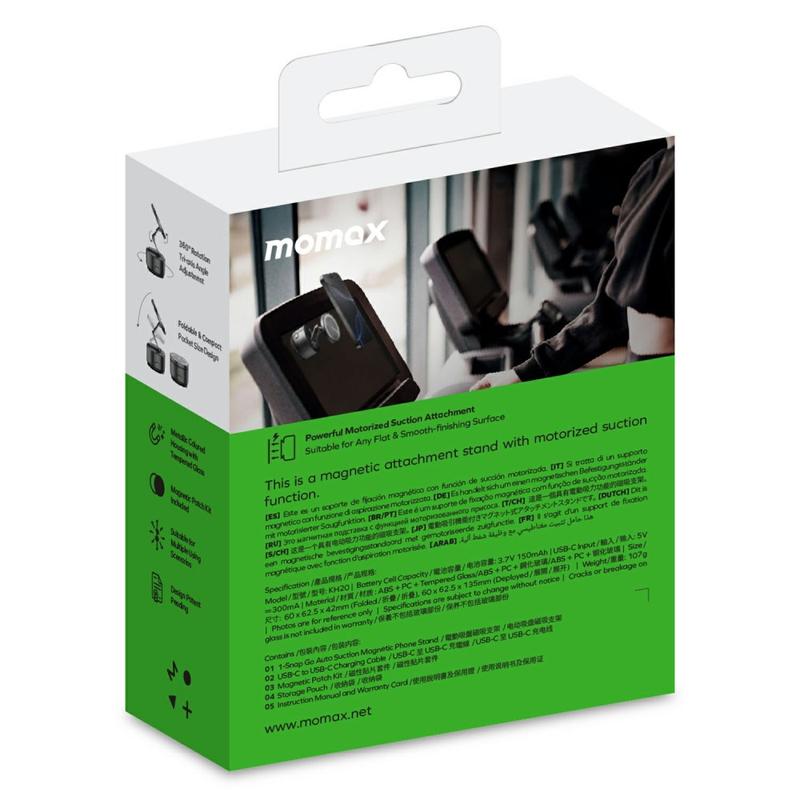 • Momax KH20 1-Snap Go Elektrischer magnetischer Handyhalter - Motorisierte automatische Saugnapfhalterung, dreiachsiger klappbarer Halter mit 360°-Drehung, über USB-C aufladbar