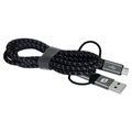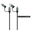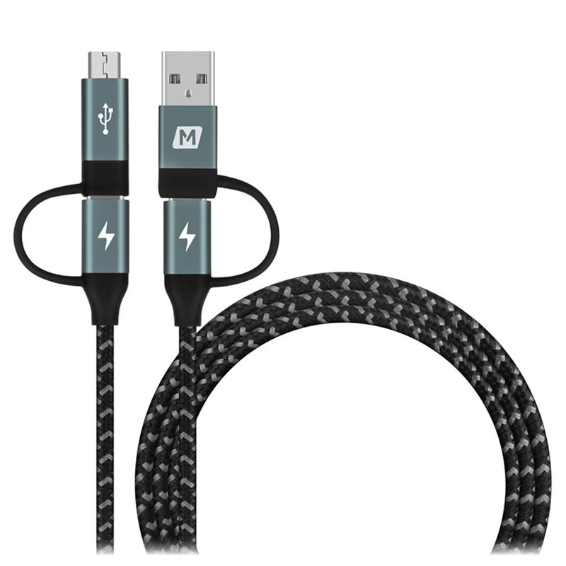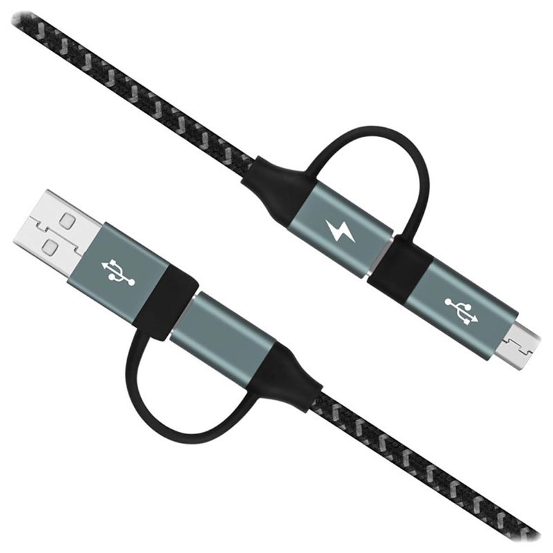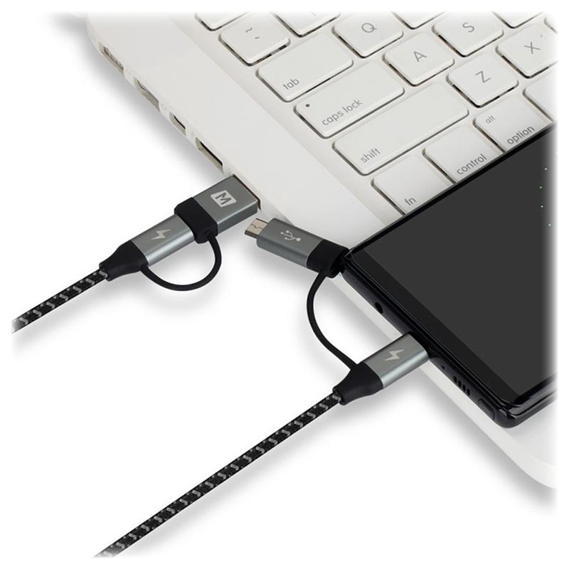 Mit diesem universellen 4-in-1-Ladekabel von Momax können Sie verschiedene Geräte problemlos anschließen und laden. Das Gerät ist mit Micro-USB-, USB 2.0- und Typ-C-Anschlüssen ausgestattet und zum Laden und Synchronisieren aller USB-C-Geräte bei voller Geschwindigkeit und Micro-USB-Geräten mit einer Geschwindigkeit, die einem Standard-Micro-USB-Kabel entspricht.
