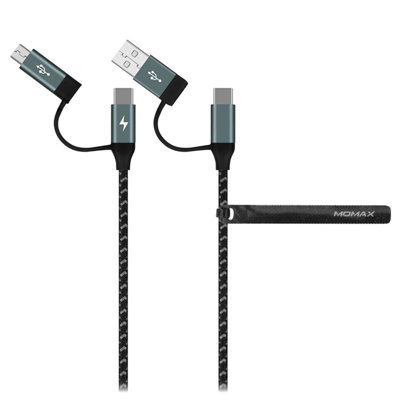 Momax OneLink 4-in-1-Universal-USB-C / USB-C-Kabel mit Micro-USB- und USB-2.0-Adaptern - QC3.0-Schnellladung, PD-Aufladung (max. 4,3 A) - 1,2 m