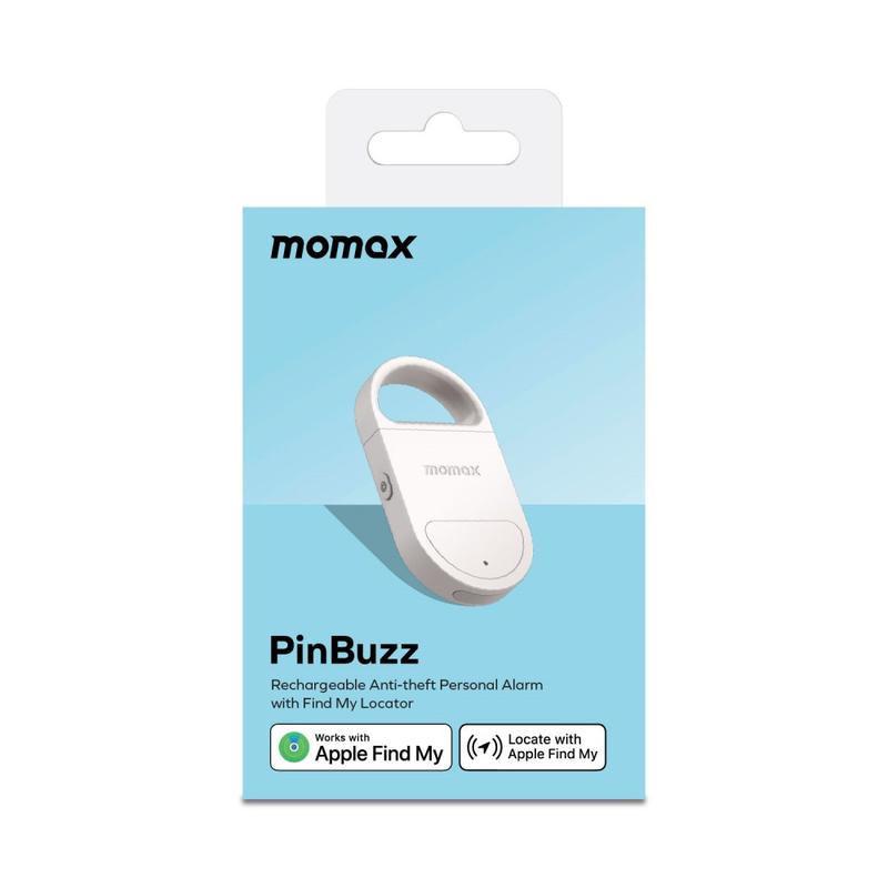 • Momax PinBuzz Persönlicher Sicherheitsalarm - 100 dB Smart Siren mit Apple Find My, Anti-Diebstahl & LED Licht