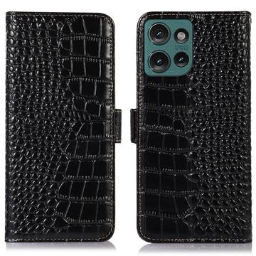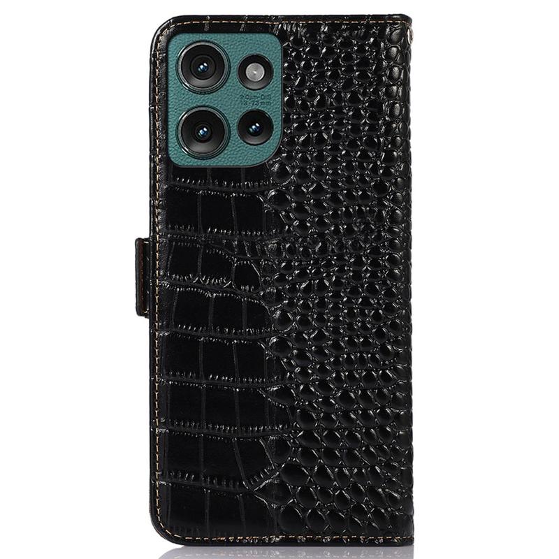 Motorola Edge 50 Neo Crocodile Serie Lederhülle mit Geldbörse mit RFID - Schwarz