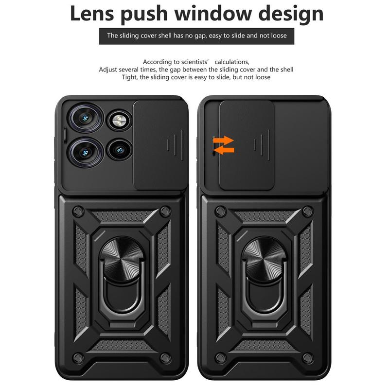 Motorola Edge 50 Neo Drehring-Hybrid Hülle mit Kameraschutz - Schwarz
