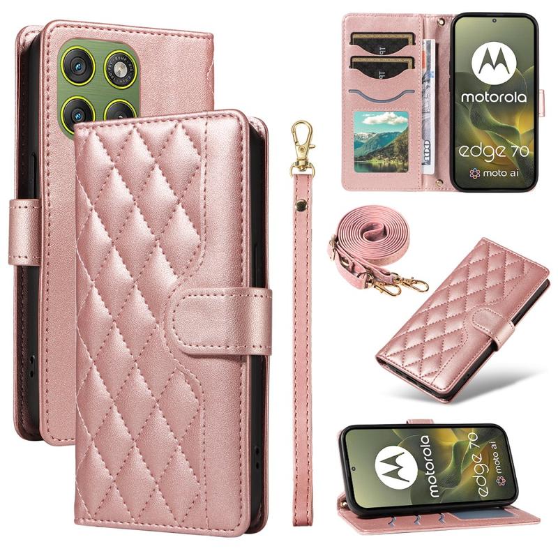 Luxus Gesteppte Wallet Hülle mit Schulter & Handgelenk Strap für Motorola Edge 70 - Rhombus-Muster Schutzhülle