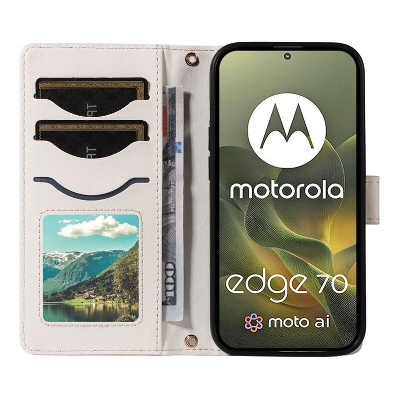 Das Luxury Quilted Wallet Case für das Motorola Edge 70 verleiht Ihrem Alltag Eleganz und Funktionalität. Diese elegante Tasche wurde für diejenigen entwickelt, die sowohl Mode als auch Funktionalität schätzen. Sie kombiniert hochwertiges Polyurethan mit einem Design im Brieftaschen-Stil - komplett mit abnehmbaren Riemen für einfache, freihändige Nutzung.