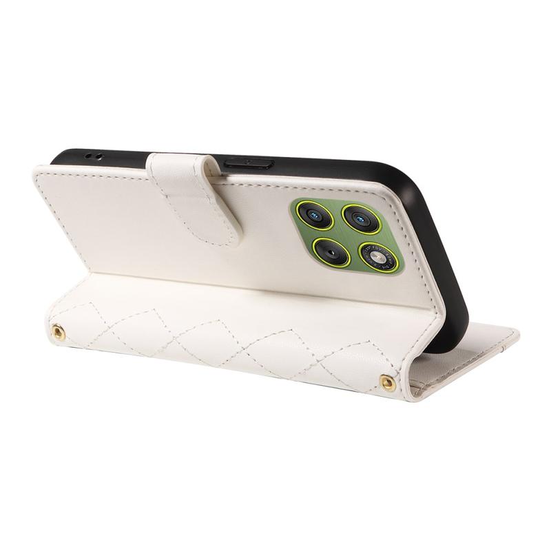 Luxus Gesteppte Wallet Hülle mit Schulter & Handgelenk Strap für Motorola Edge 70 - Rhombus-Muster Schutzhülle