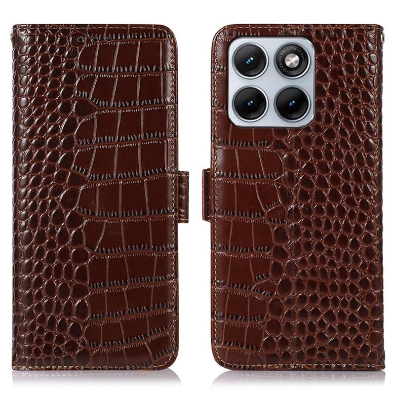 Crocodile Serie Lederhülle mit Geldbörse mit RFID für Motorola Edge 70 Fusion