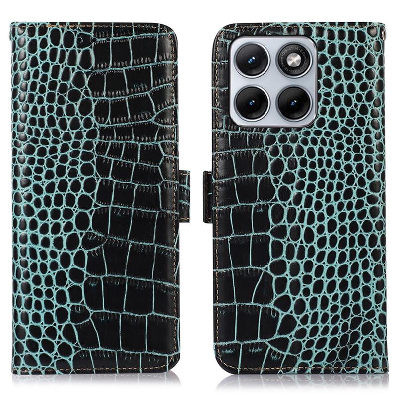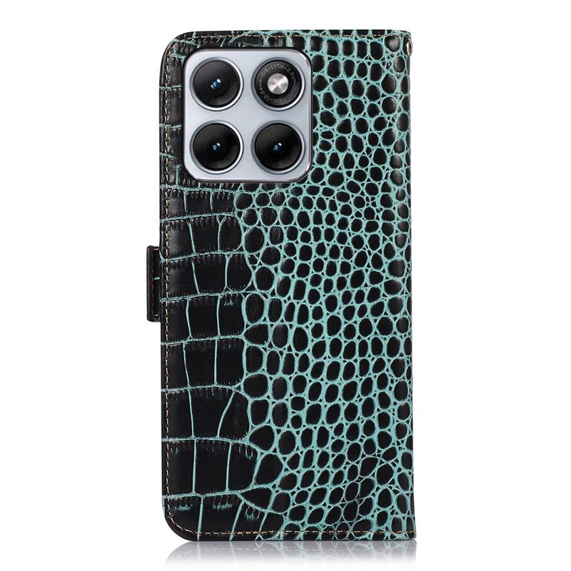 Crocodile Serie Lederhülle mit Geldbörse mit RFID für Motorola Edge 70 Fusion