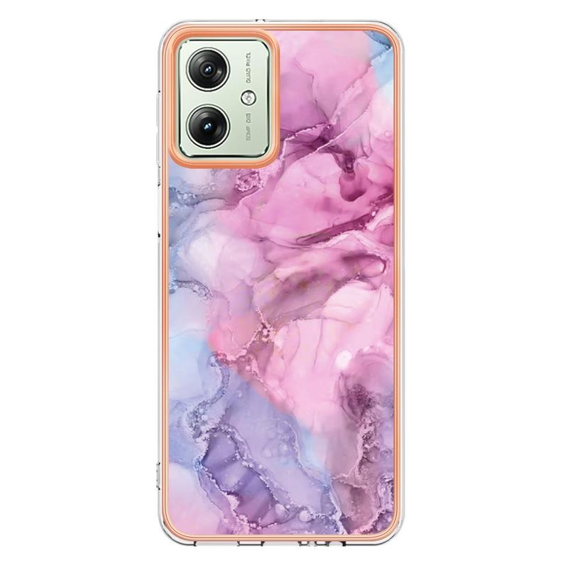 Motorola Moto G54 Galvanisierte IMD TPU-Hülle mit Marmormuster - Blau / Rosa