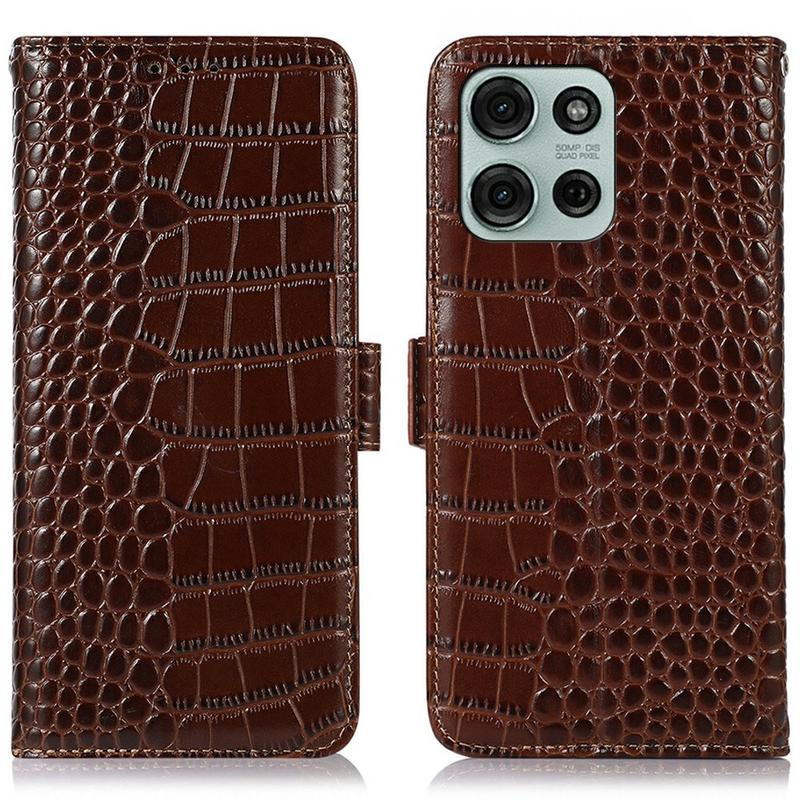 Motorola Moto G75 Crocodile Serie Lederhülle mit Geldbörse mit RFID