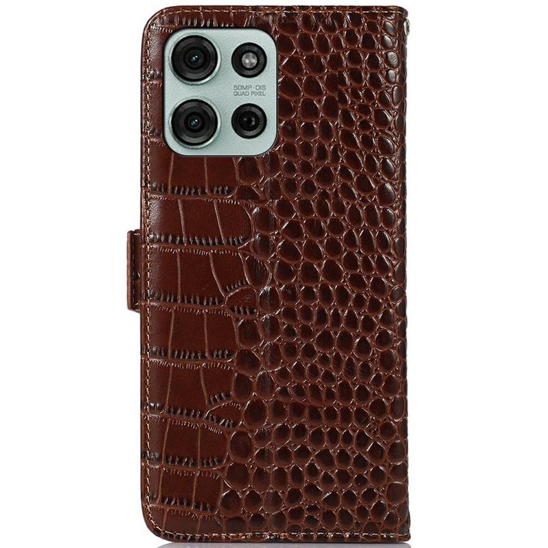 • Crocodile Serie Lederhülle mit Geldbörse mit RFID für Motorola Moto G75