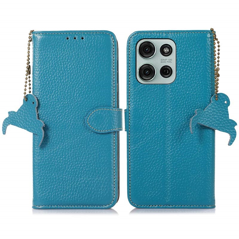 Motorola Moto G75 Lederhülle mit Geldbörse mit RFID - Blau
