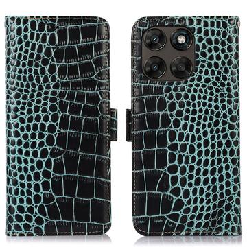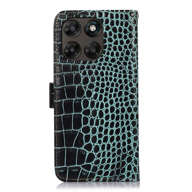 Motorola Moto G77/G67 Crocodile Serie Lederhülle mit Geldbörse mit RFID - Grün